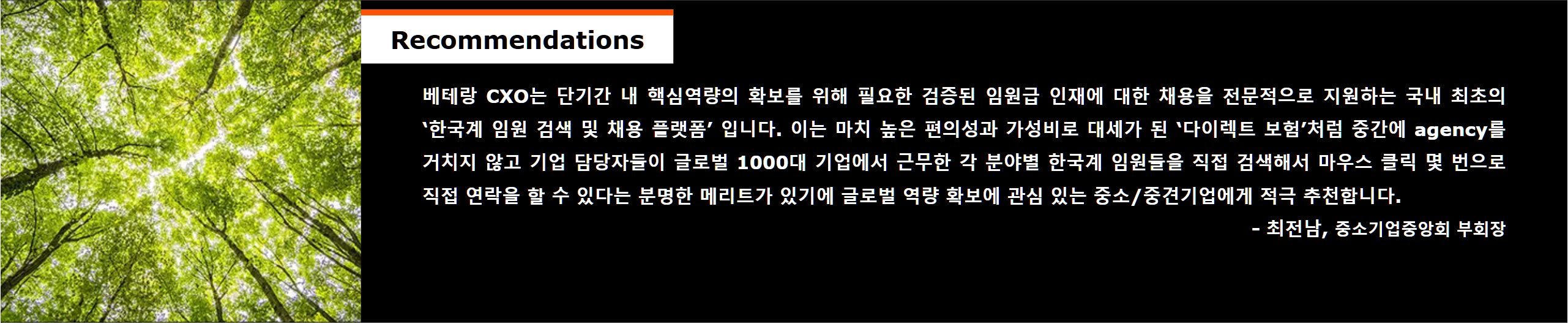 전세계 글로벌 1000대 기업 출신의 한국계 임원 검색 및 채용 플랫폼